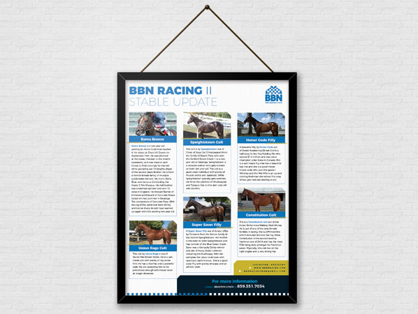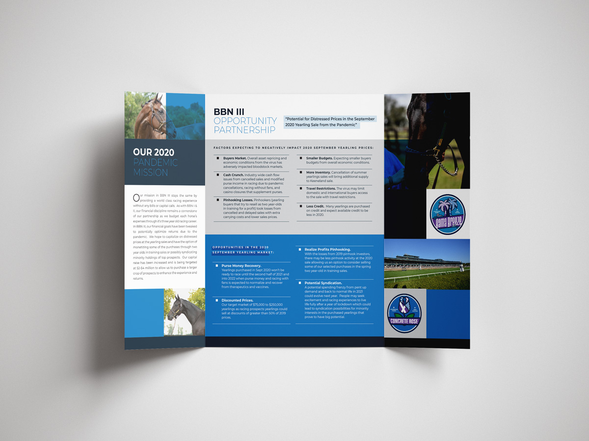 Led by founding partners, Brian Klatsky and Brendan O’Brien, BRANDilly was tasked with developing a brand that delivered on the thrill and excitement of horse ownership, but also communicated over 120 combined years of thoroughbred ownership, training and racing experience. Our deliverables included logo and identity creation, website design, graphic design and printing (stable listings, investment brochures) and a variety of digital collateral.