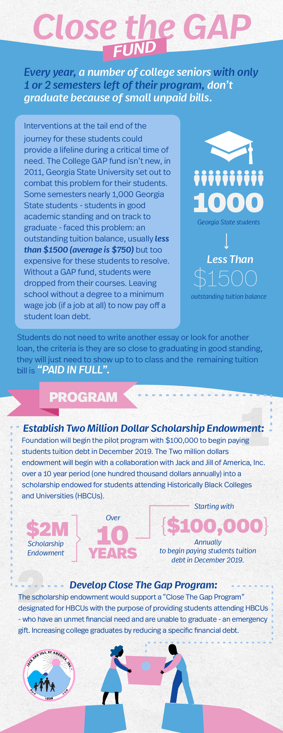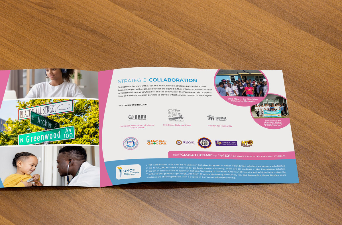 BRANDilly was awarded the graphic design and printing contract for the Jack and Jill of America, Inc. National Convention in 2018. In addition to servicing the the organization’s marketing and creative needs for the conference, we’ve been fortunate to work with a number of local chapters, the Mid-Atlantic Region and the Jack and Jill Foundation since then providing creative support for everything from infographics to banners to design and printing of their annual reports.